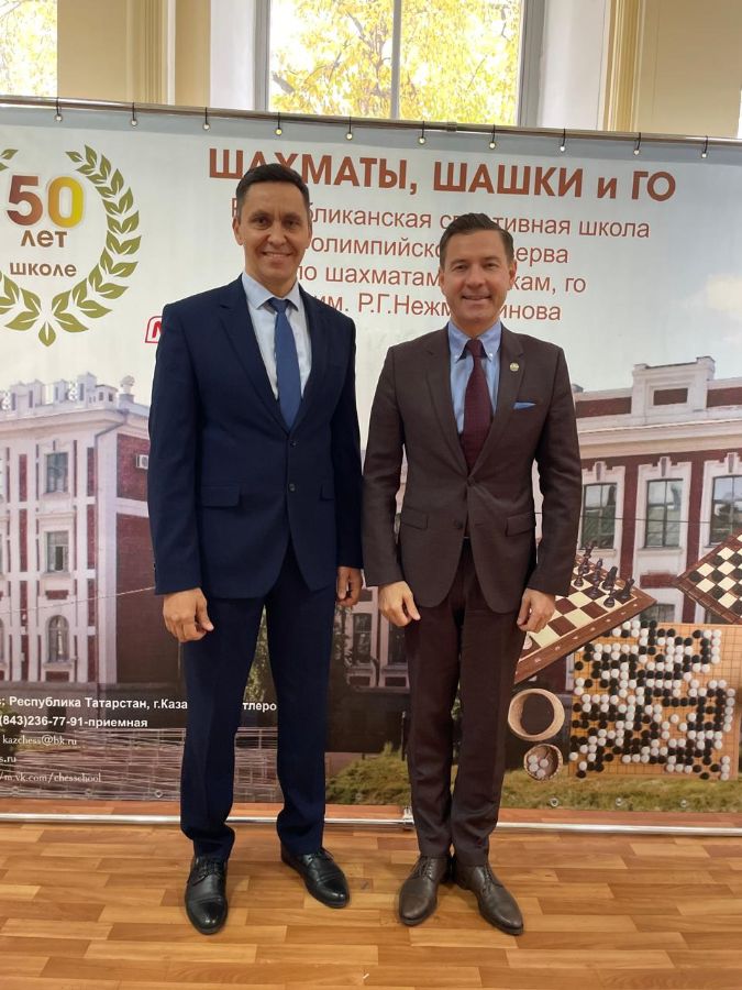 Сегодня, 6 октября, с рабочим визитом Республиканскую спортивную школу олимпийского резерва им.Р.Г Нежметдинова посетил министр спорта Республики Татарстан Владимир Александрович Леонов. В ходе визита министр лично ознакомился с ходом проведения одного из ключевых турниров сезона — этапа ДКР «Кубок Казани», оценив высокий уровень организации соревнований.Также в рамках встречи с директором школы были обсуждены вопросы проведения ремонтно-реставрационных работ здания, что является важным шагом в сохранении и развитии материальной базы старейшей шахматной школы Татарстана.