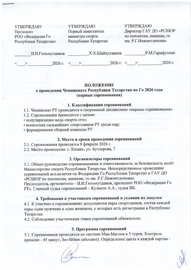 Чемпионат РТ по го (парные соревнования) пройдет в РСШОР 8 февраля